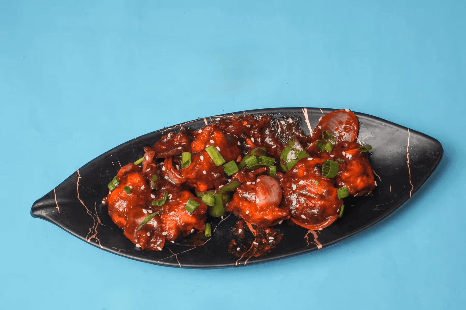 Chicken 65 is a spicy, deep-fried chicken dish is widely enjoyed as a popular appetizer or snack. The chicken is marinated in a blend of yogurt and aromatic spices, then coated in flour before being fried until crispy.