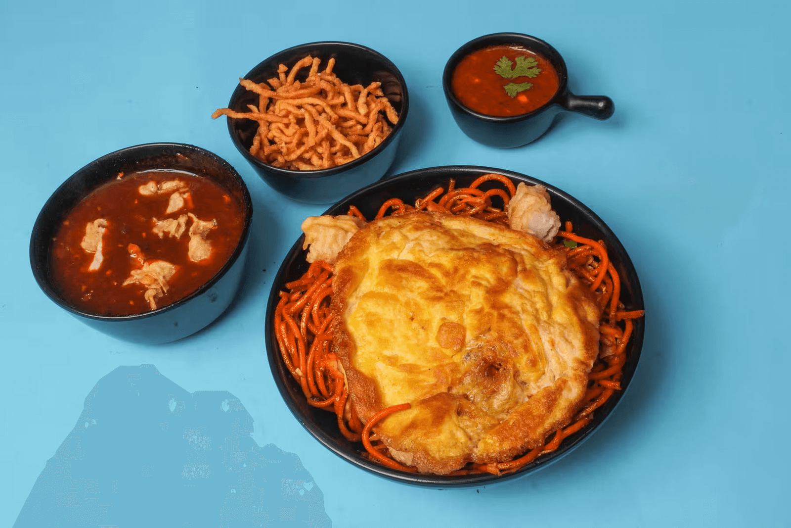 Chicken triple noodles are a popular Indo-Chinese dish featuring a spicy mix of stir-fried chicken, boiled noodles, and vegetables, all served with a flavorful Schezwan sauce and topped with crispy fried noodles for added texture.